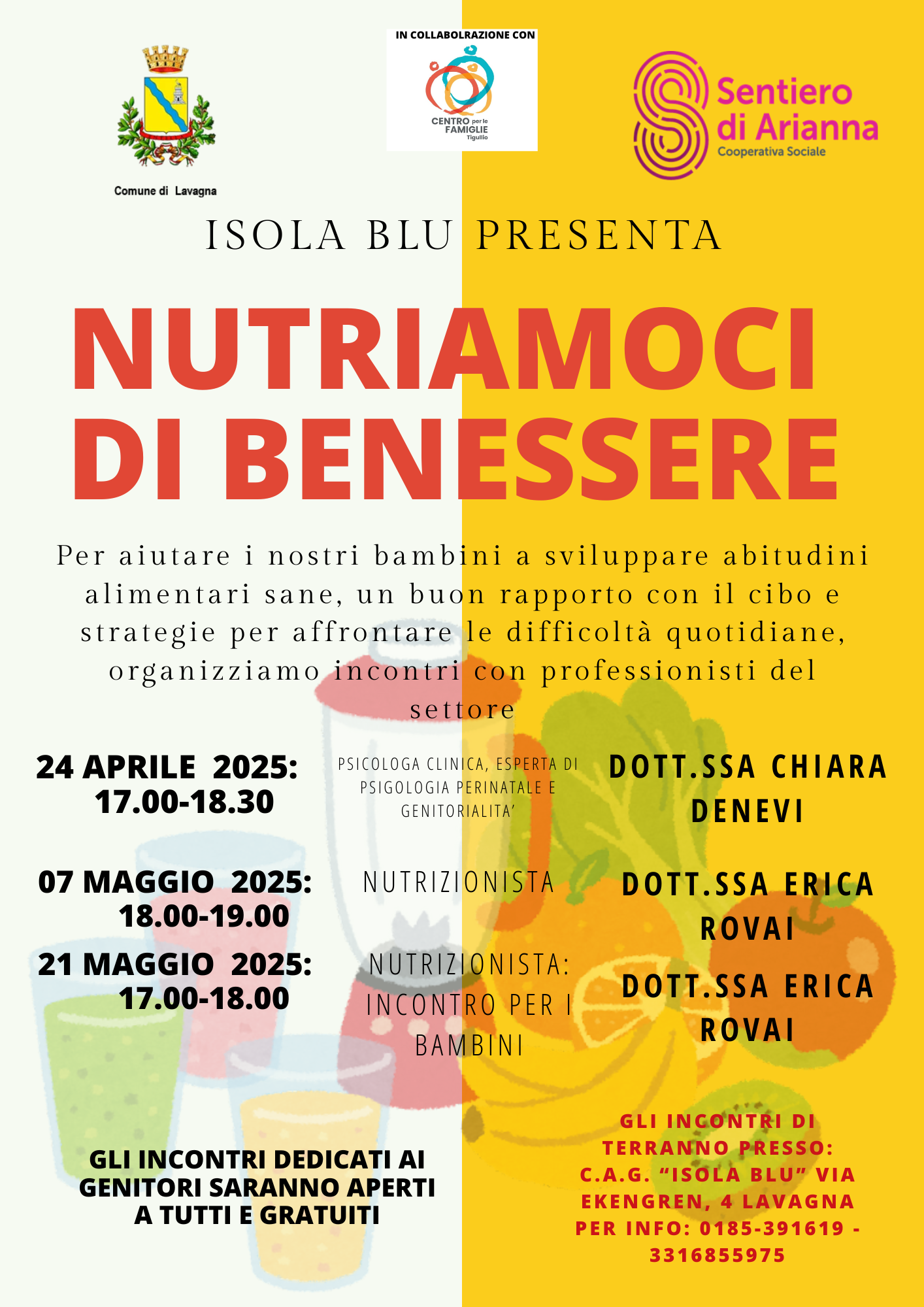 - 7 maggio 18-19 e 21 maggio 17-18 a cura della dott.ssa Erica Rovai